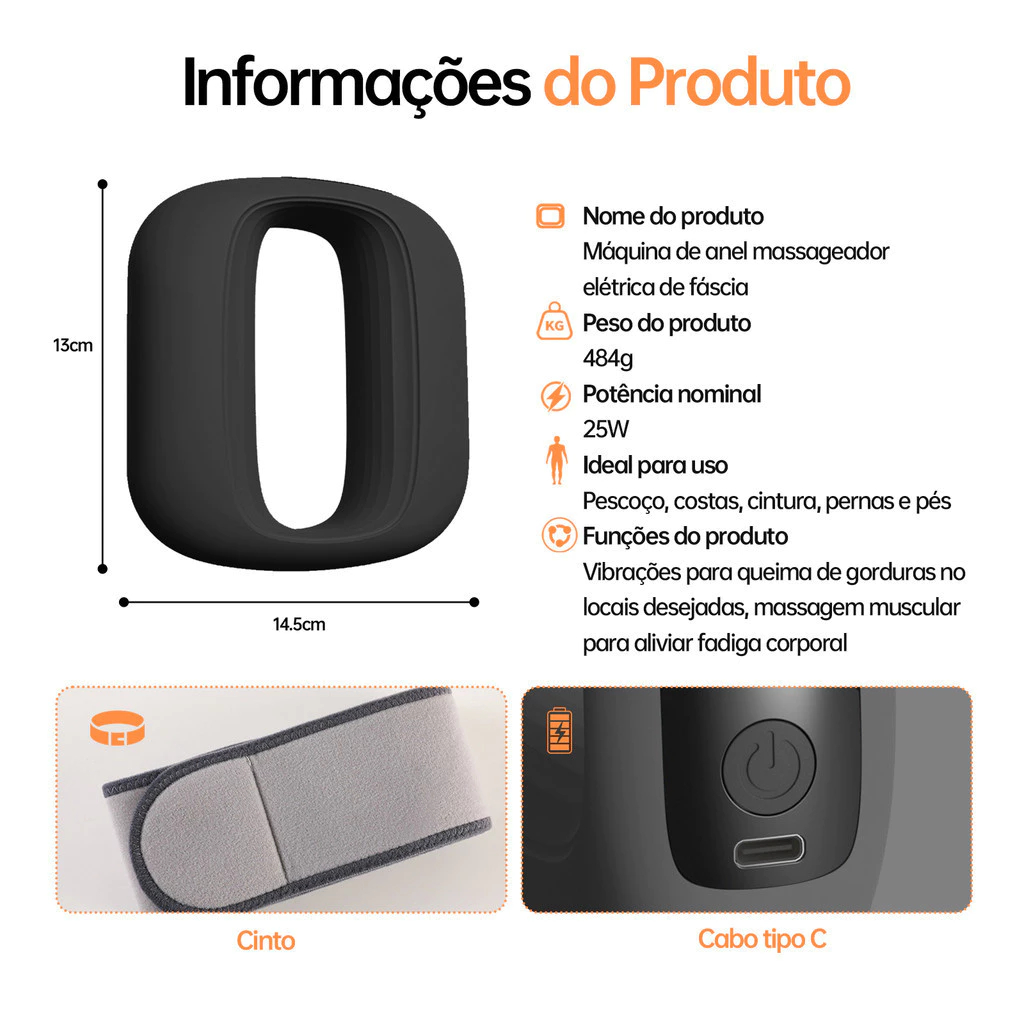 O Anel Massageador Elétrico Profissional 8 Velocidades usa tecnologia de vibração profunda capaz de ativar a fáscia muscular, quebrar acúmulos de gordura localizada e promover relaxamento intenso — tudo isso com apenas 10 minutos por dia.